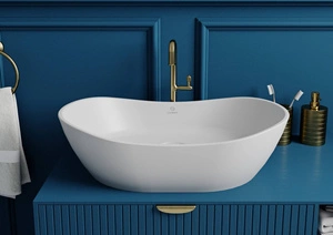 VALET Umywalka nablatowa 64x36 cm owalna blat P bez otworu na baterię biały mat