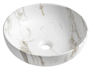 BANERA ROUND umywalka kompozytowa nablatowa, średnica 39cm, biały/brązowy mat