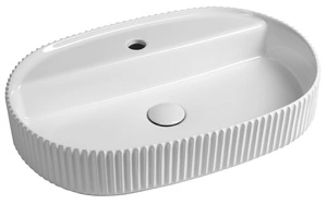 Zestaw DES UMYWALKA NABLATOWA 70X35CM OWALNA BIAŁY POŁYSK + Bateria nablatowa wysoka ICONIC Chrom