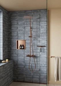 Y termostatyczny system prysznicowy natynkowy, miedź szczotkowana