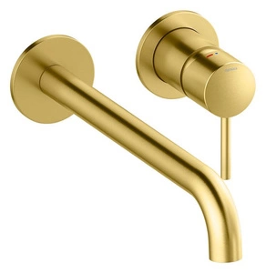 Zestaw elementów 250 mm zewnętrznych z wylewką podtynkowej baterii umywalkowej szczotkowany mosiądz pvd