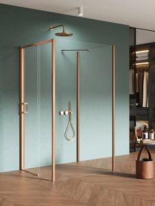 NZ4 Kabina prysznicowa PRIME COPPER BRUSHED 1D kwadratowa przyścienna P 100x100x200 szkło czyste 6mm Active Shield 2.0