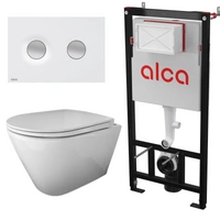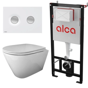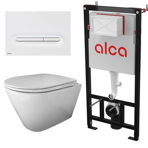 RAK Ceramics RESORT Miska WC podwiesz. Rimless 52x36 cm biały połysk ze stelażem i przyciskiem Przycisk Aluminiowy Flat Turn Alunox Mat Alcadrain