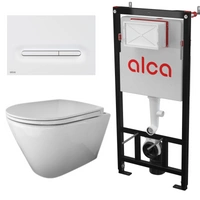 RAK Ceramics RESORT Miska WC podwiesz. Rimless 52x36 cm biały połysk ze stelażem i przyciskiem Przycisk THIN Biały Połysk Alcadrain