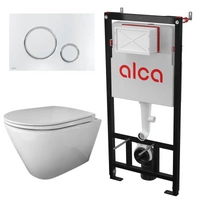 RAK Ceramics RESORT Miska WC podwiesz. Rimless 52x36 cm biały połysk ze stelażem i przyciskiem Przycisk THIN Biały Połysk / Chrom Połysk Alcadrain