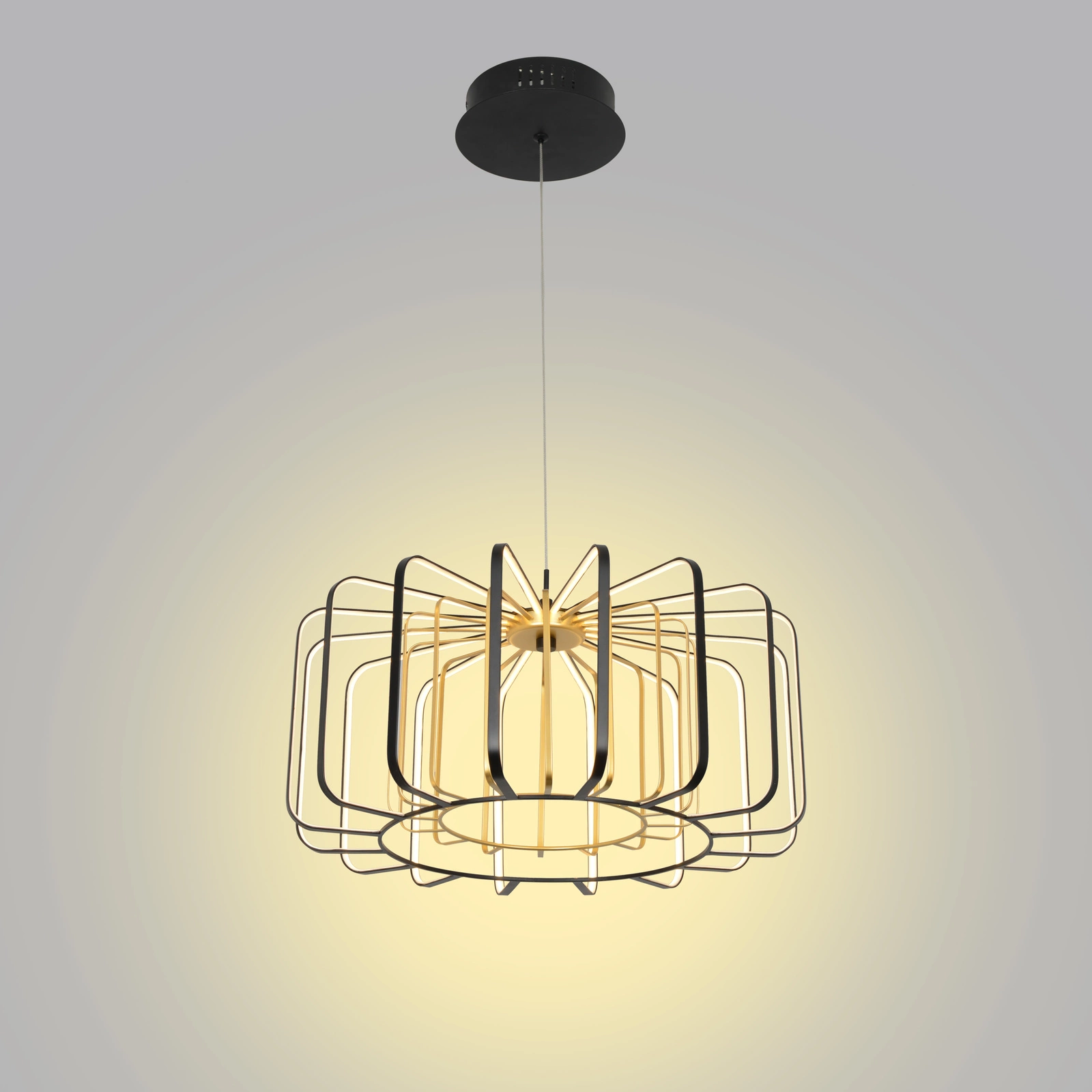 Lampa XARA dostępna jest w klasycznym, uniwersalnym kolorze czerni i złota, które doskonale komponują się z różnorodnymi aranżacjami wnętrz. Wykonana z wysokiej jakości materiałów, zapewnia trwałość i odporność na uszkodzenia, co czyni ją idealnym wyborem do długoterminowego użytku.