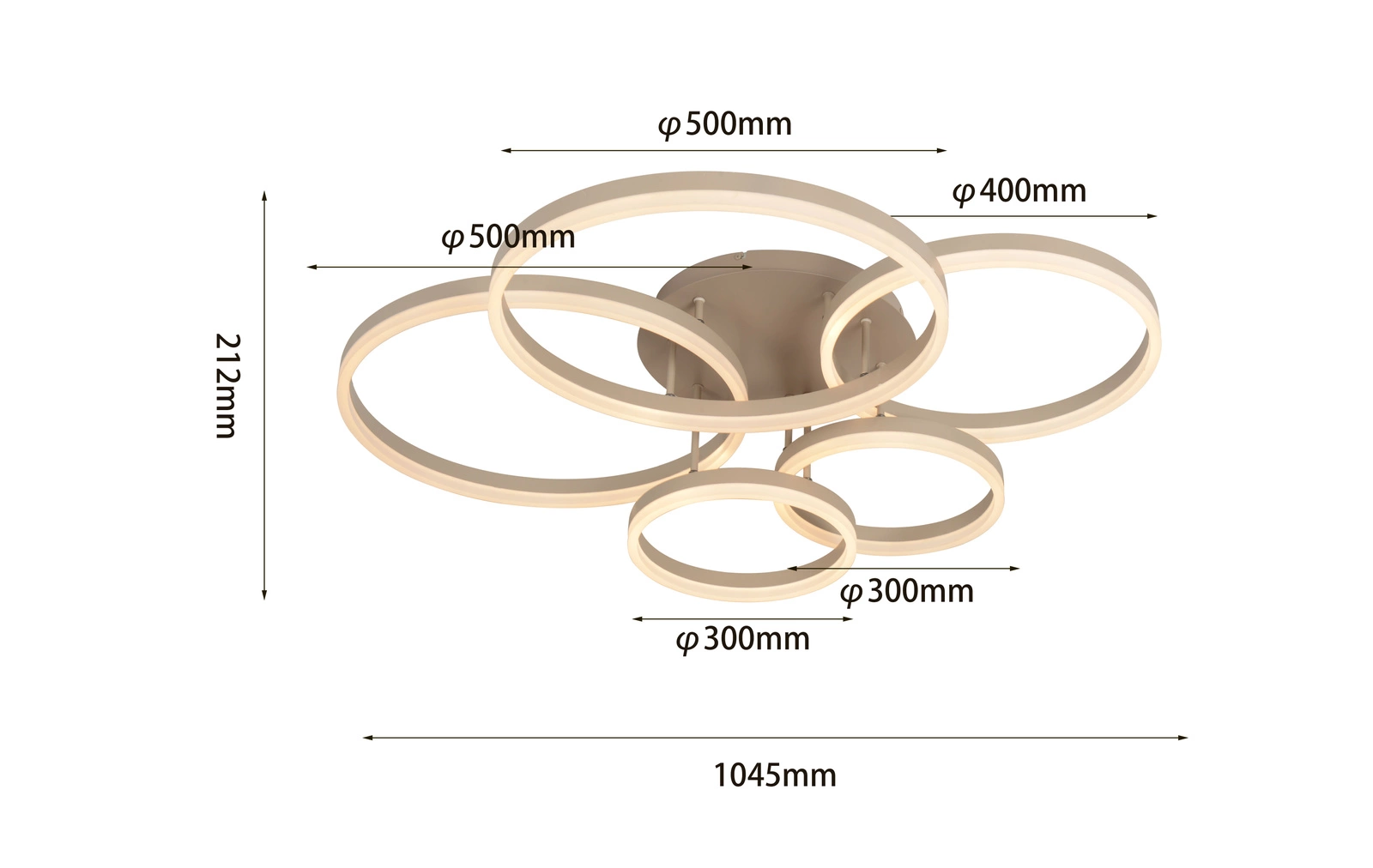 Ta piękna lampa sufitowa piątka RAVELO będzie wspaniałym dodatkiem do Twojego wnętrza. Jest dostępna w nowoczesnym kolorze kaszmirowym, który pasuje do nowoczesnych ale również klasycznych pomieszczeń.