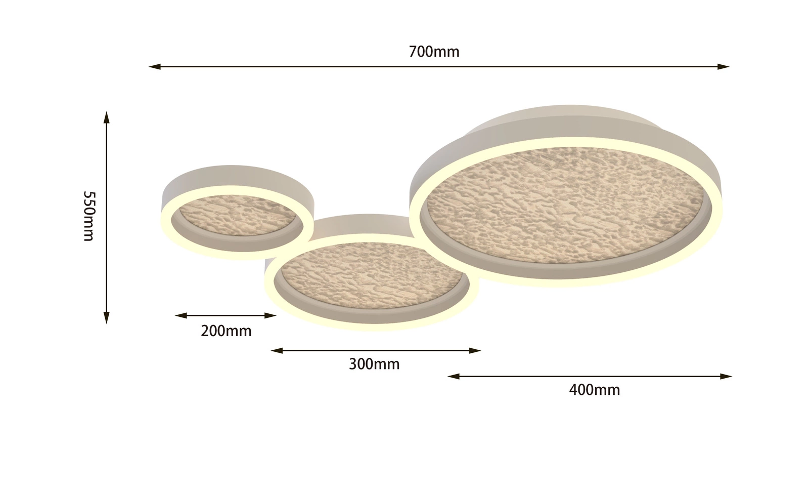 Dzięki swojej szerokości 70 cm, nasza lampa sufitowa BORMES sprawdzi się w pomieszczeniach o różnej wielkości, nawet. Świetnie wygląda w salonie, sypialni, kuchni czy biurze.