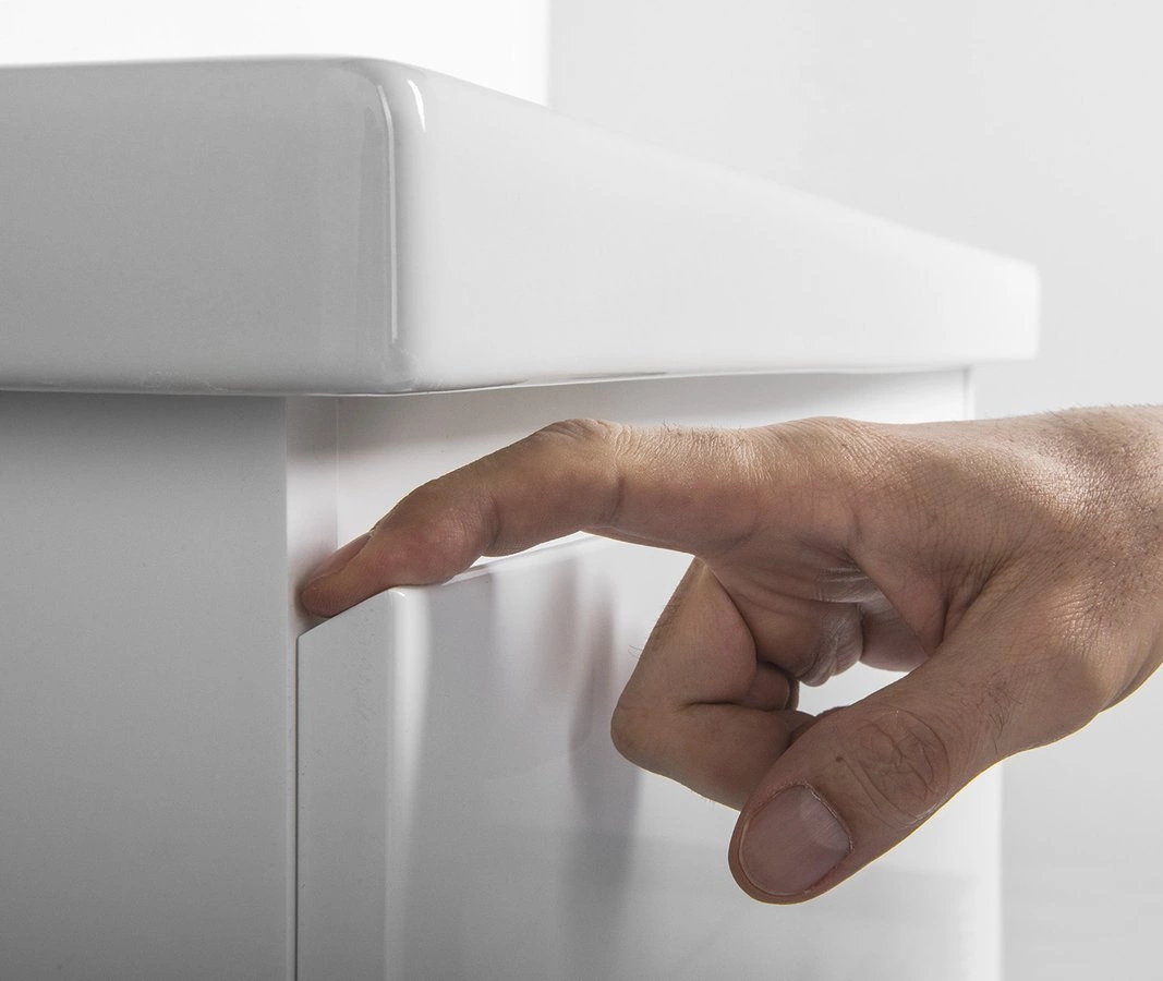 Szuflady naszych mebli wyposażone są w prowadnice z systemem powolnego i cichego domyku. Wystarczy jedno pchnięcie i szuflada domknie się sama, cicho i delikatnie.