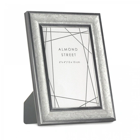 Mottled Grey finish with contrasting metallic silver effect detail on inner and outer edge. Complemented by a grey velvet window opening back, the versatile style is available in two additional sizes 4" x 4" and 7" x 5"