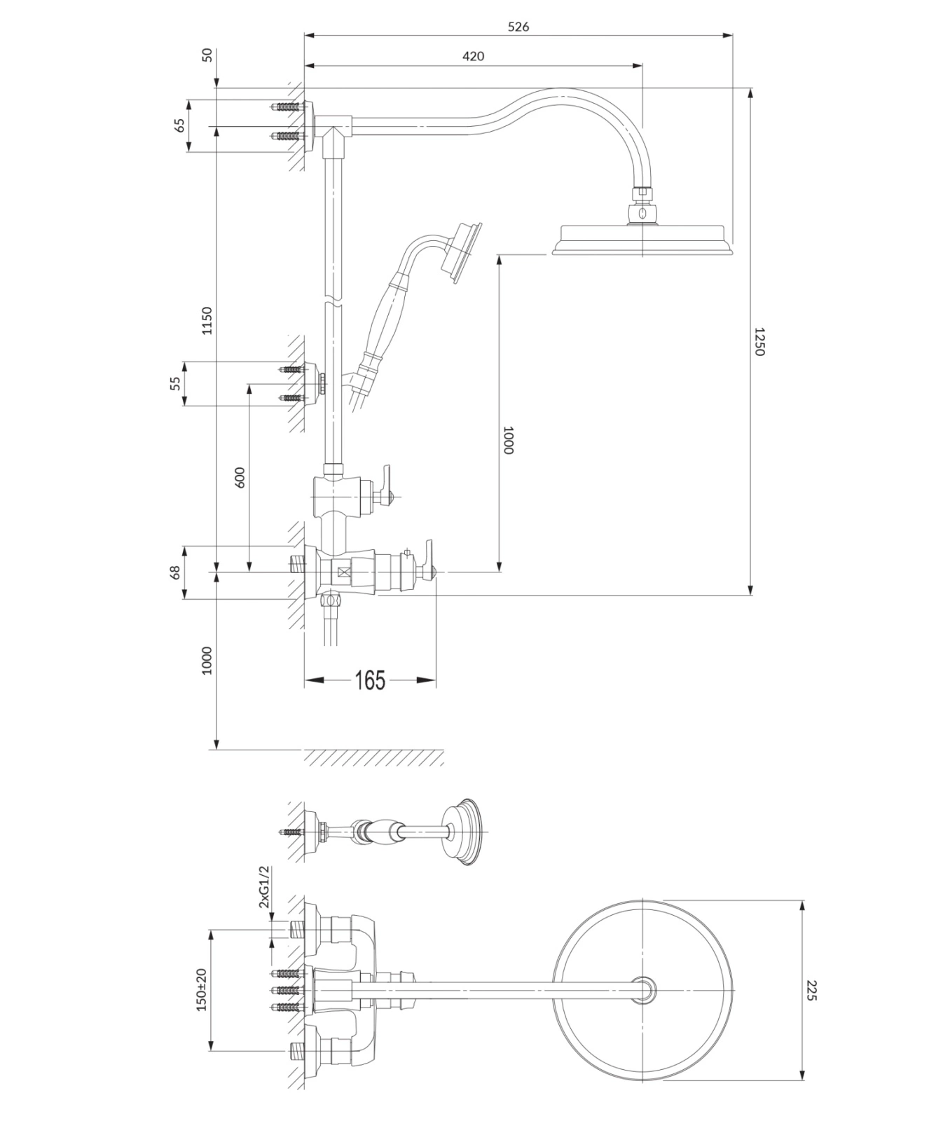 - deszczownica mosiężna (WGARMANCEORB), rozmiar: ø22,5 cm, zasięg od ściany: 42 cm