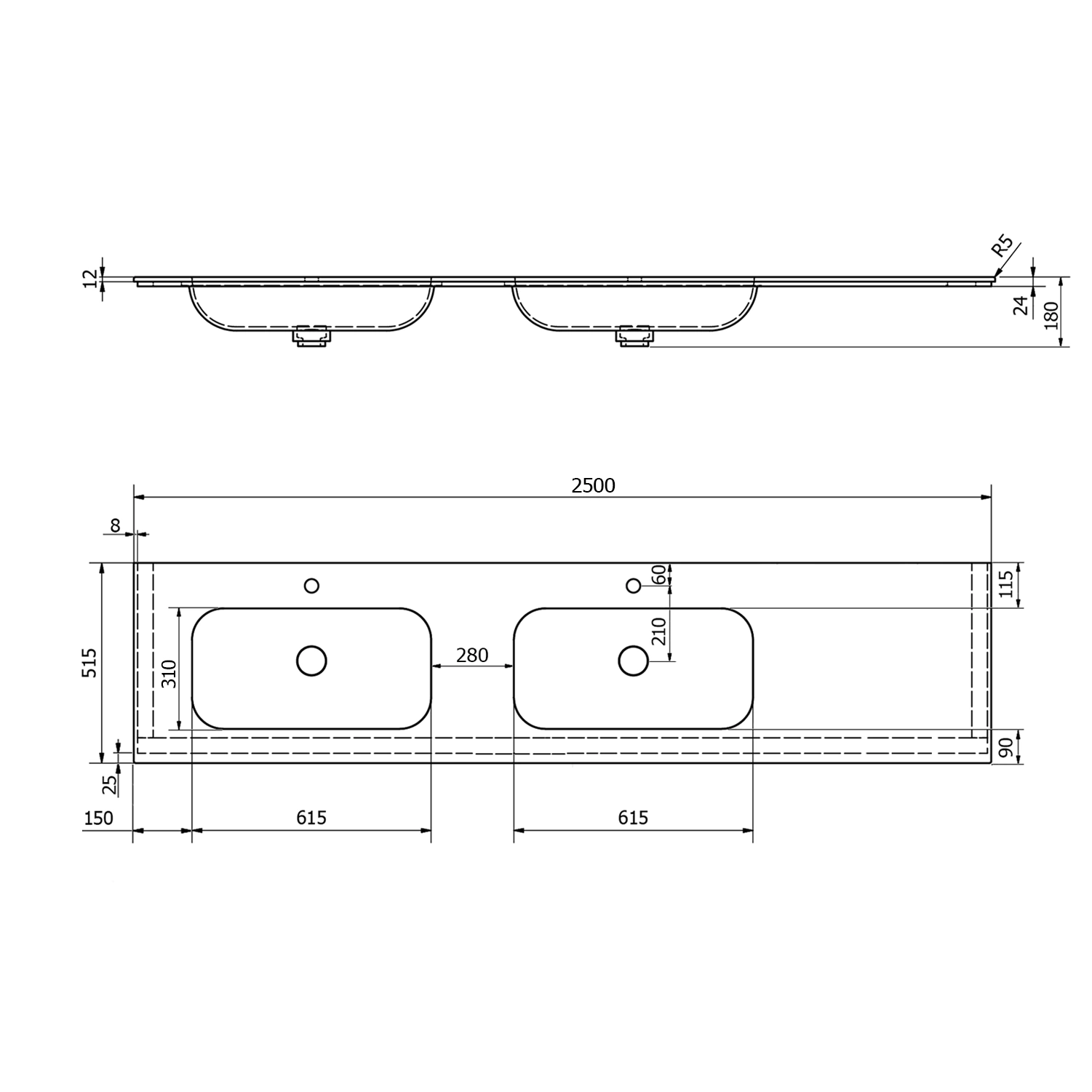 Korek odpływu umywalki jest wykonany z tego samego materiału co umywalka. W pozycji otwartej korek jest zlicowany z dnem umywalki. Umywalkę można umieścić na konstrukcji, wsporniku lub niestandardowym meblu. W jednym blacie można umieścić aż 3 komory myjące.