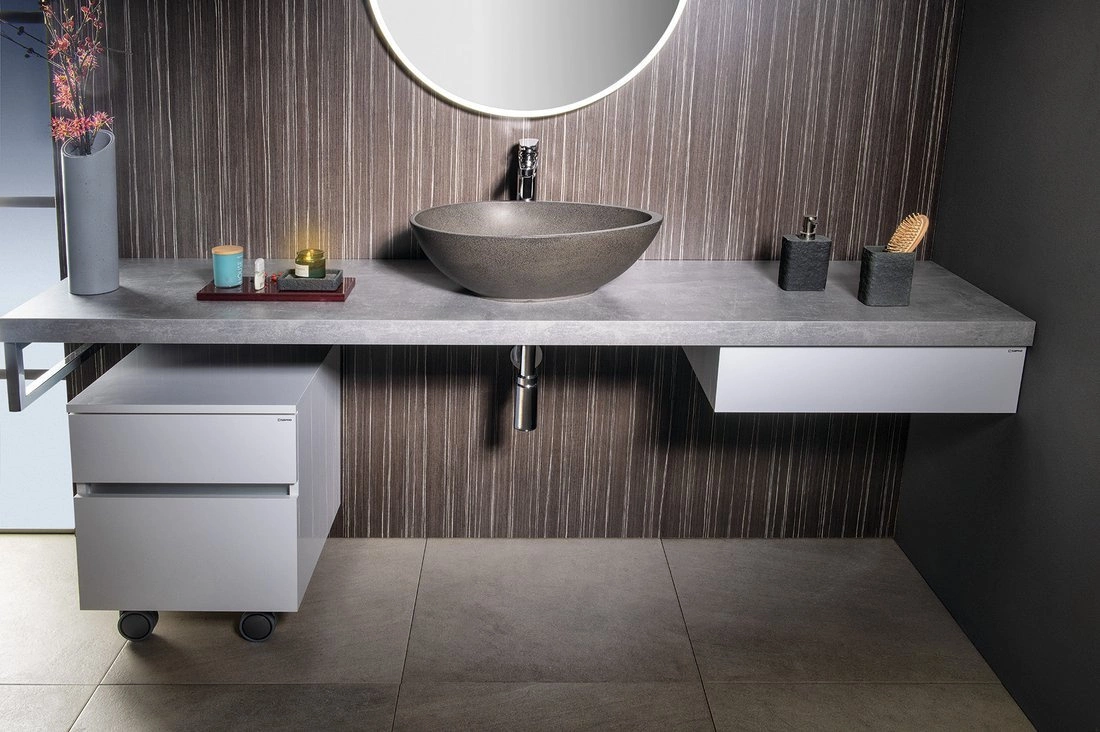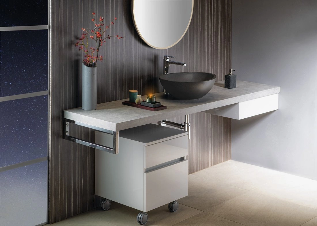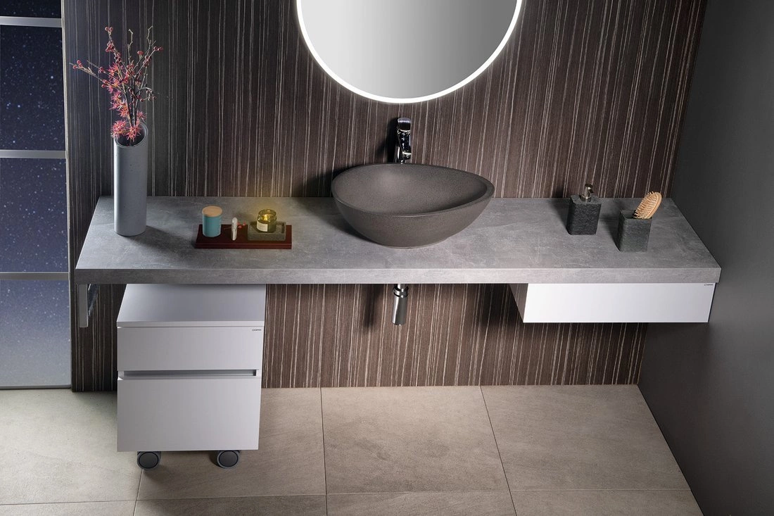 Seria szafek dodatkowych do blatów podumywalkowych z serii AVICE i OLIVER. Do wyboru szafki wiszące podblatowe lub szafki na kółkach. Wybierz odpowiednią szafkę  i dopasuj do swojego projektu, aby stworzyć perfekcyjną łazienkę.