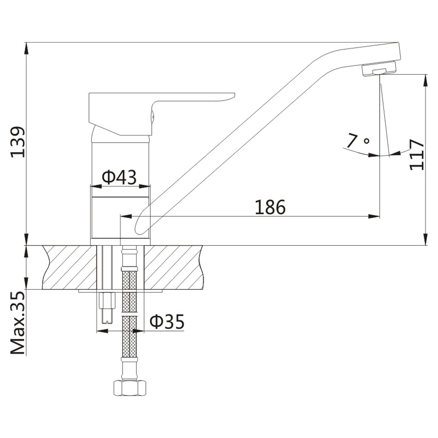 BARON bateria kuchenna, 186mm, obrotową wylewką, chrom