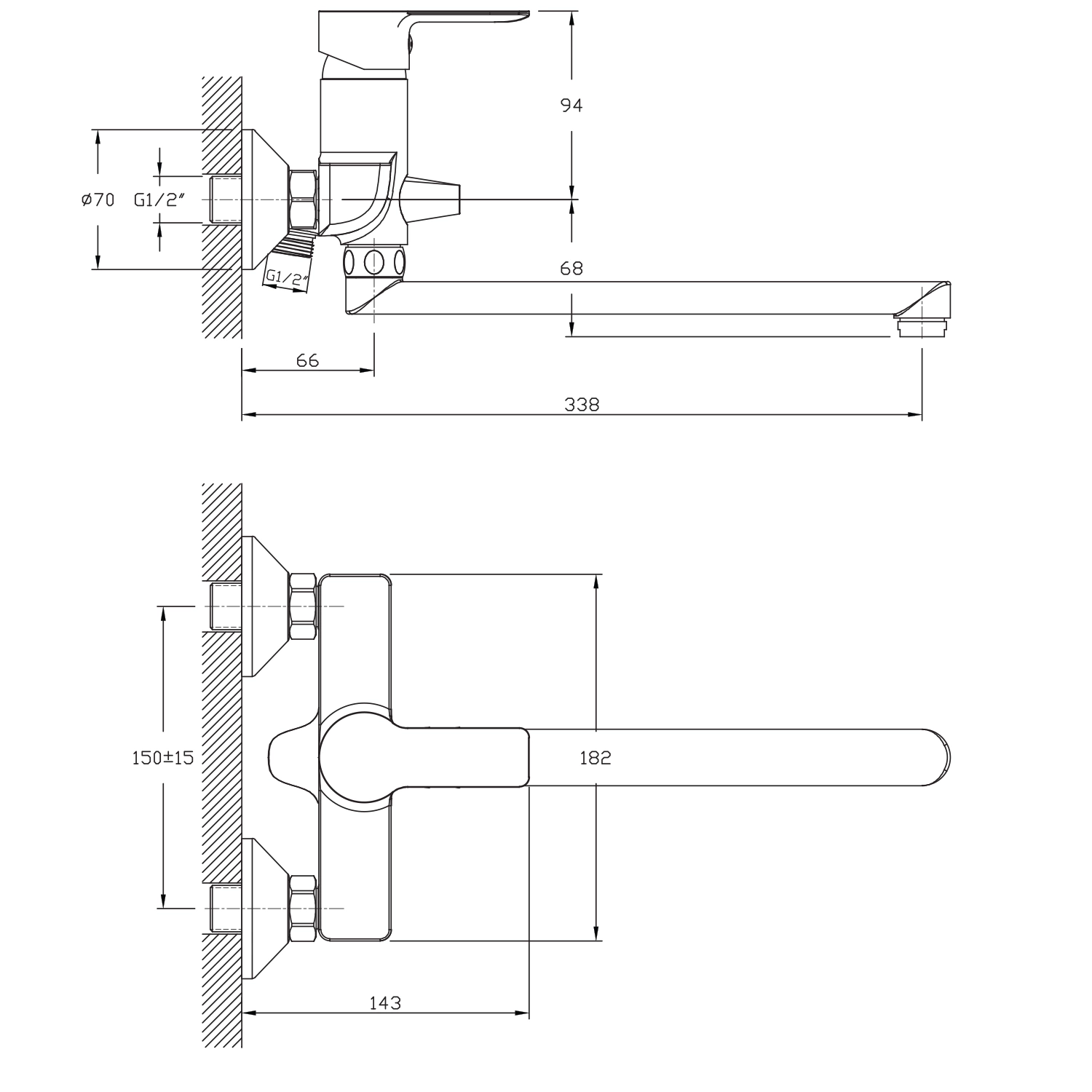 BARON bateria ścienna umywalkowa/wannowa, chrom