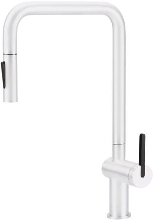 Bateria kuchenna Momi, wykonana z wytrzymałej stali nierdzewnej, wyróżnia się prostokątną wylewką, która nadaje jej wyjątkowego charakteru. Dzięki wbudowanemu aeratorowi, woda jest napowietrzana, co pozwala zredukować jej zużycie. Wyciągana wylewka zapewnia wygodę w codziennym użytkowaniu, umożliwiając swobodne manewrowanie wodą podczas czynności w strefie zlewozmywaka. Dodatkowo, bateria posiada dwa rodzaje strumienia: napowietrzony do codziennego mycia oraz delikatny strumień deszczowy, doskonały do płukania warzyw i owoców. Bateria Momi, wykończona w matowym, białym kolorze wprowadza do kuchni subtelną elegancję i nowoczesną lekkość.