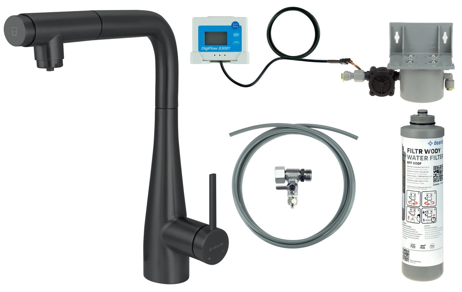 Dołączony zestaw filtracyjny skutecznie usuwa chlor, metale ciężkie, piasek i inne zanieczyszczenia, poprawiając smak oraz zapach wody. Dzięki temu możesz bez obaw podawać ją rodzinie, używać do gotowania czy przygotowywania napojów. Praktyczny monitor wskazuje, kiedy należy wymienić wkład filtracyjny, co gwarantuje stałą jakość wody na co dzień. Montaż całego systemu jest szybki i prosty, a codzienne korzystanie z niego – intuicyjne i wygodne.