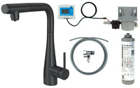 Bateria kuchenna z systemem filtracji wody Eridan to wyjątkowe rozwiązanie, które łączy elegancję, funkcjonalność i troskę o zdrowie. Smukła forma baterii, wykończona w matowej czerni, nadaje kuchni wyrafinowanego charakteru. Subtelnie rozszerzający się ku dołowi korpus sprawia, że całość prezentuje się lekko i harmonijnie.