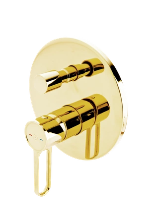 Piękne wykończenie o jasnozłotej barwie oraz elegancka forma to najbardziej charakterystyczne cechy podtynkowej baterii natryskowo-wannowej z modnej kolekcji ZAFFIRO GOLD. Bateria doskonale ozdobi nowoczesną strefę kąpieli, zapewniając użytkownikom komfort i niezapomniane doznania estetyczne. Nie zajmuje wiele miejsca, gdyż na zewnątrz widoczne są tylko: okrągła rozeta, otwarty wygodny w użyciu uchwyt oraz dwufunkcyjny przełącznik. Bateria wyposażona została w gwarantujący jej trwałość i niezawodność działania regulator ceramiczny.