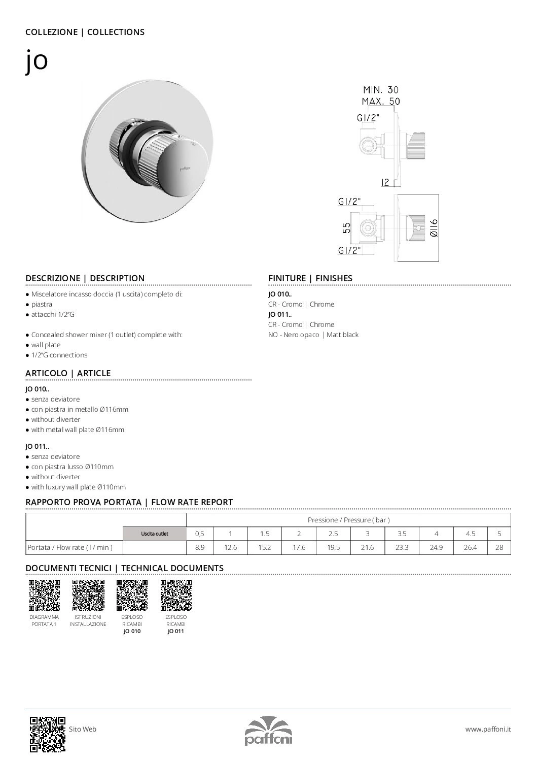 • Bateria podtynkowa 1-drożna