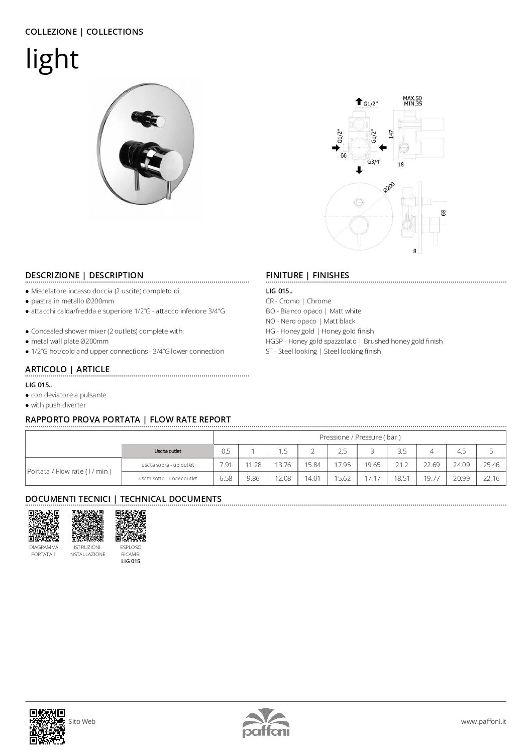 Bateria podtynkowa 2-drożna-Paffoni/kolekcja Light