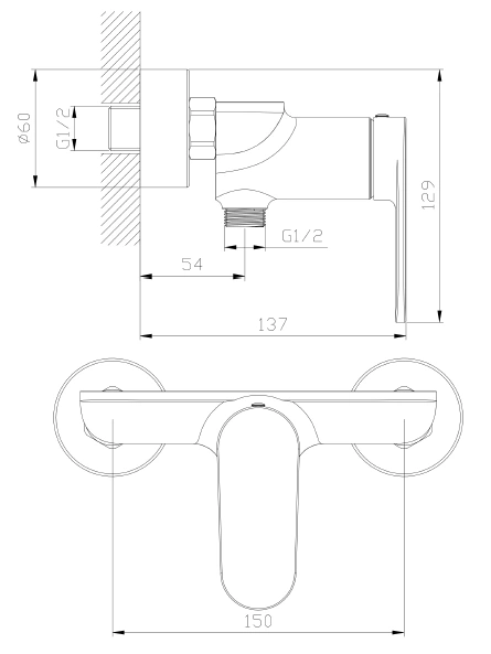 Parametry kluczowe: kod: ABLU301111; EAN: 5907333341945; kolekcja: LUNEPO; rodzaj: bateria prysznicowa, jednouchwytowa, mieszaczowa; kolor/wykończenie: chrom, połysk; materiał: mosiądz; głowica ceramiczna: 35 mm; montaż: ścienny; rozstaw przyłączy: 150 mm; przyłącze: G1/2; klasa przepływu: C; grupa akustyczna: II; wymiary produktu (wg rysunku): 129 × 150 × 137 mm (wys. × szer. × gł.). 5907333341945ABLU301111