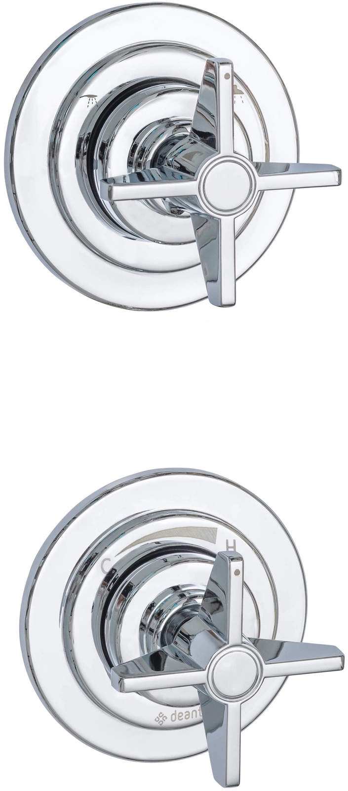 Bateria podtynkowa Temisto przykuwa uwagę stylizowanymi pokrętłami i dyskretnym montażem podtynkowym. Jeden z uchwytów jest progresywną głowicą mieszającą, kręcąc nim w prawą stronę, woda stopniowo staje się coraz cieplejsza, aż do uzyskania pożądanej temperatury. Drugie pokrętło to ceramiczny przełącznik funkcji, który umożliwia przełączenie źródła wody między deszczownicą a słuchawką prysznicową. Bateria wykonana jest z wysokiej jakości mosiądzu, który zapewnia trwałość i odporność produktu. Błyszczące, chromowe wykończenie znajdzie zastosowanie w wielu klasycznych i nowoczesnych aranżacjach. Podtynkowy montaż pozwala na łatwiejsze utrzymanie armatury w czystości, szczególnie przy zastosowaniu dedykowanych preparatów z oferty Deante.Właściwości