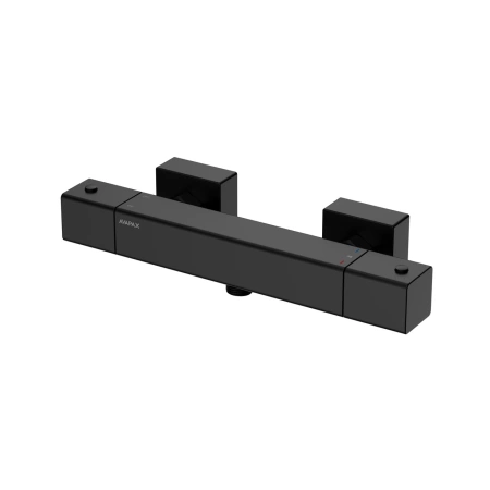 - Avapax THERMO, bateria prysznicowa termostatyczna (symbol produktu: ABTH2113T1) w kolorze czarnym mat utrzymuje stałą temperaturę z blokadą dla bezpieczeństwa, działa cicho, a solidny mosiądz i montaż ścienny zapewniają trwałość i wygodę.