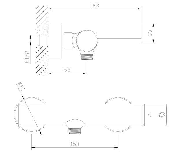 - Montaż: ścienny (natynkowy); rozstaw przyłączy 150 mm; przyłącze G1/2.