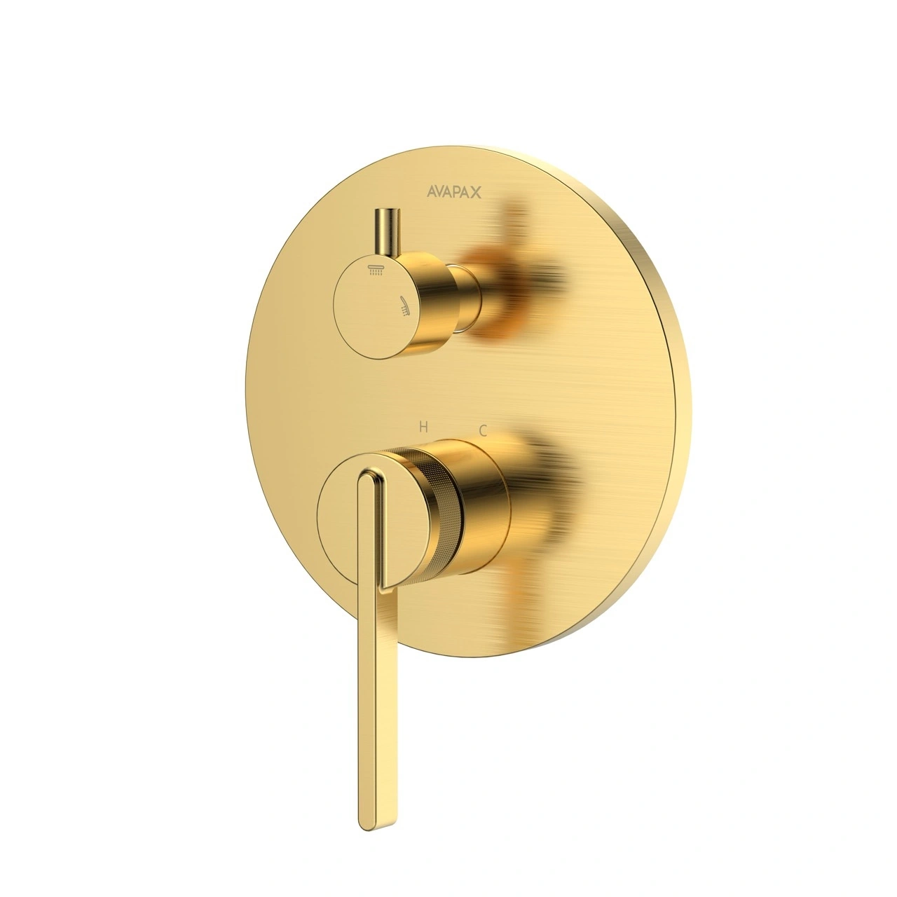 - Avapax AUREVO, Bateria prysznicowo-wannowa podtynkowa dwufunkcyjna (symbol produktu: ABAU5212C1) w kolorze złotym, szczotkowana. Elegancki panel zapewnia płynną zmianę trybów i komfortowe kąpiele, a mosiądz gwarantuje trwałość i łatwe czyszczenie.