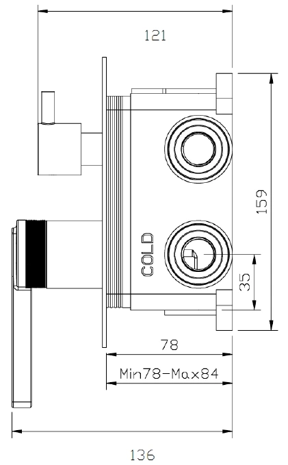 - Forma: cylindryczna, proporcjonalna; powierzchnia: szczotkowana; kolor: złoty szczotkowany Brushed Gold; sugerowana głębokość zabudowy: min 78–max 84 mm (wg rysunku technicznego).