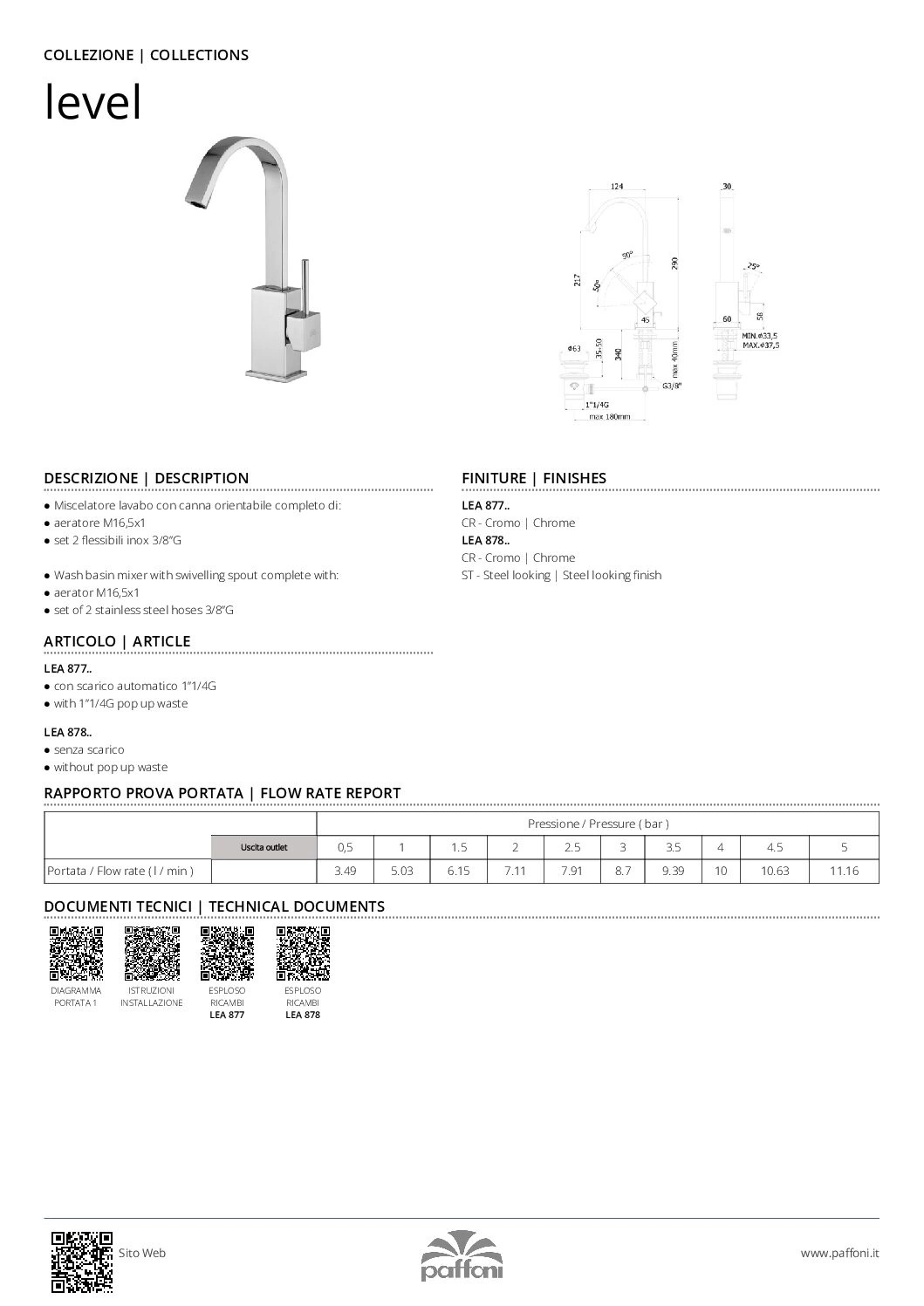 Bateria umywalkowa stojąca (bez korka)-Paffoni/kolekcja Level