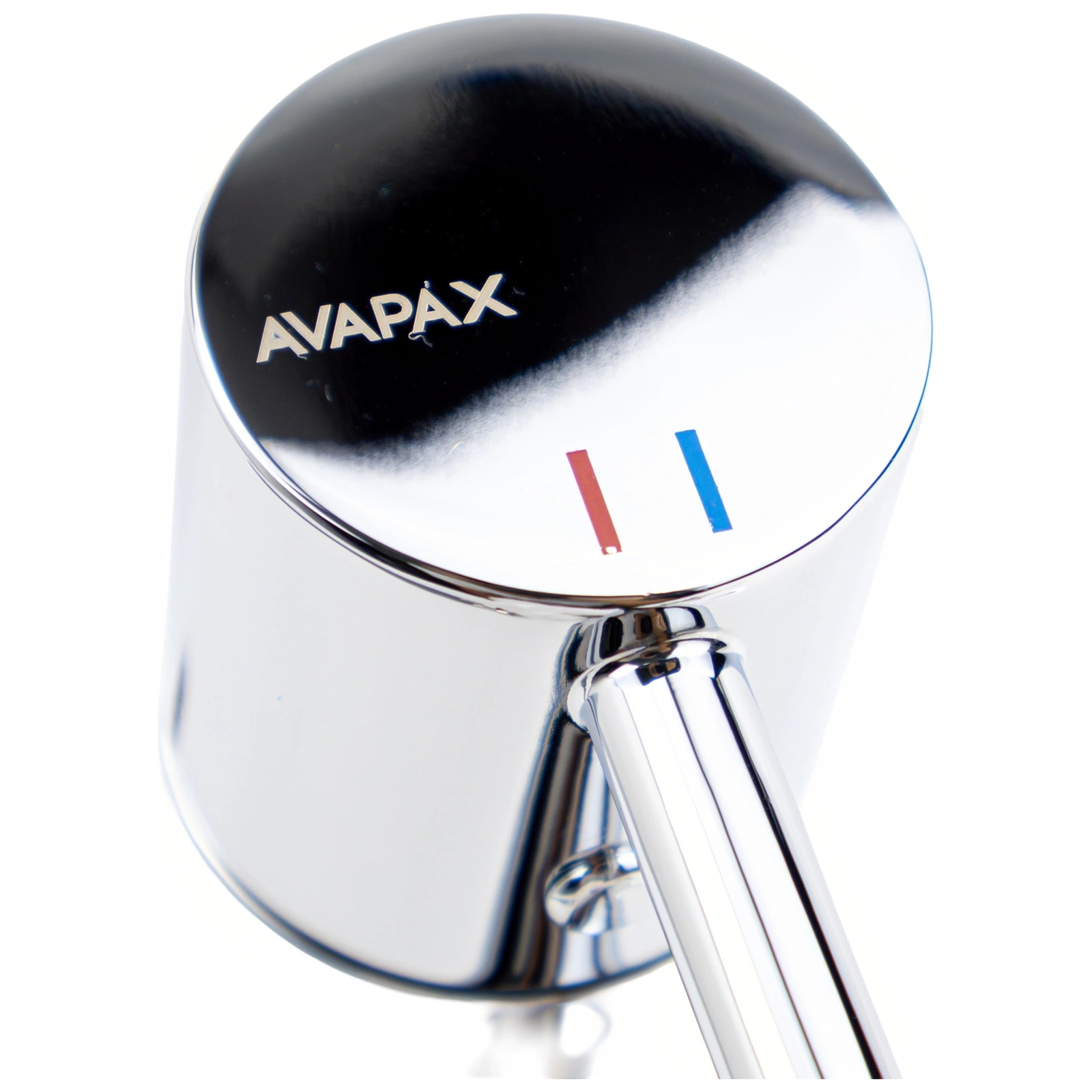 - Avapax ULTIMATE, Bateria umywalkowa stojąca w kolorze chrom, symbol produktu ABUL111111, oferuje elegancję i wygodę. Płynna regulacja, trwały mosiądz i cicha praca zapewniają oszczędny, komfortowy strumień oraz łatwe czyszczenie i montaż.