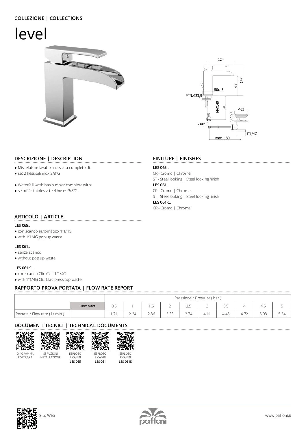 Bateria umywalkowa stojąca kaskada-Paffoni/kolekcja Level