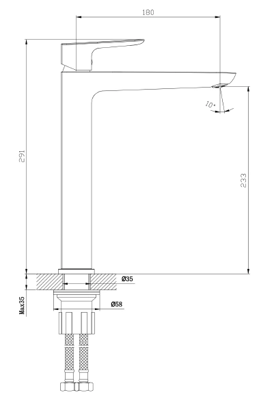 - Wysoki, ergonomiczny korpus z zasięgiem wylewki 180 mm zapewnia swobodę użytkowania przy umywalkach nablatowych.