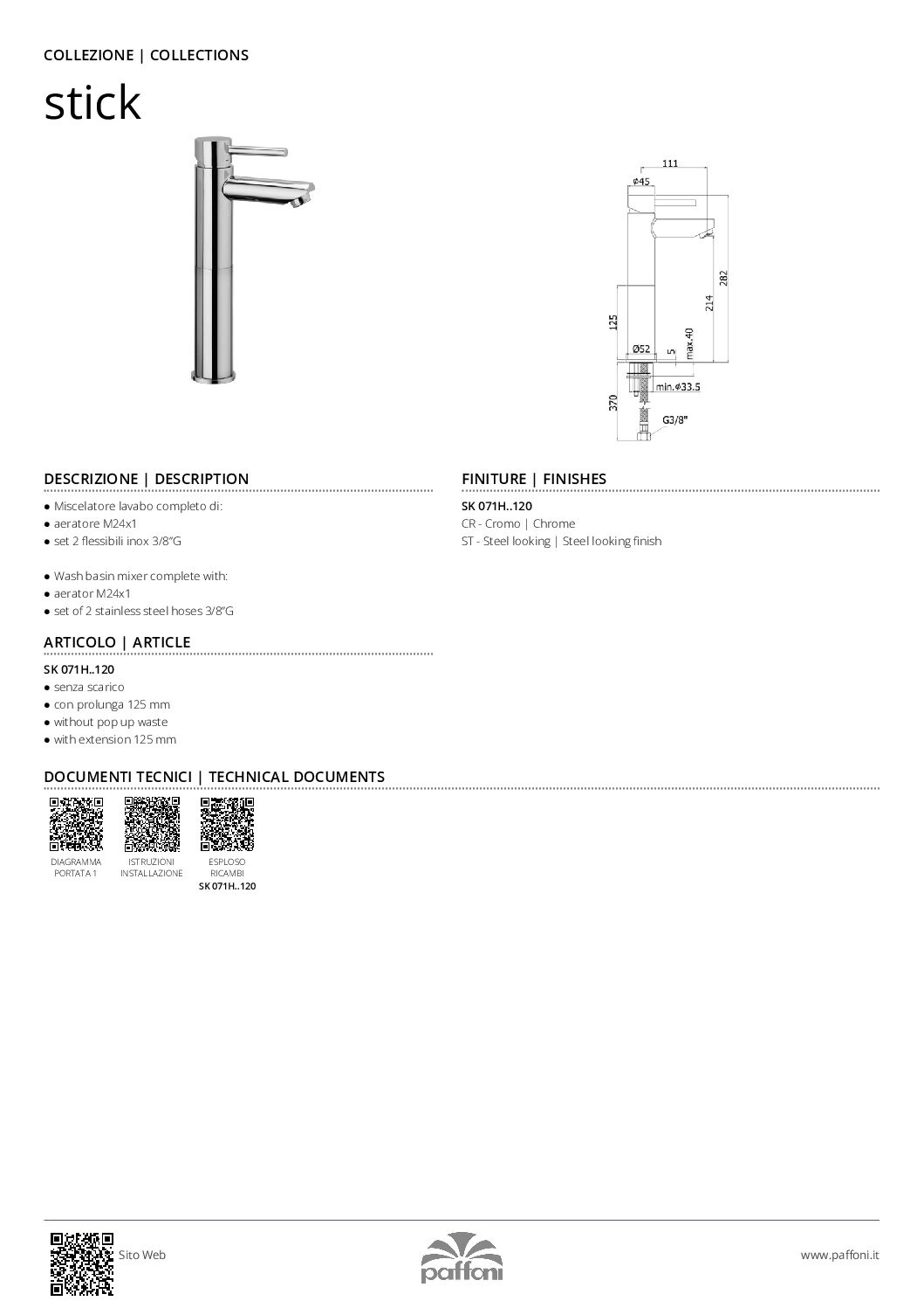 Bateria umywalkowa wysoka (bez korka)-Paffoni/kolekcja Stick
