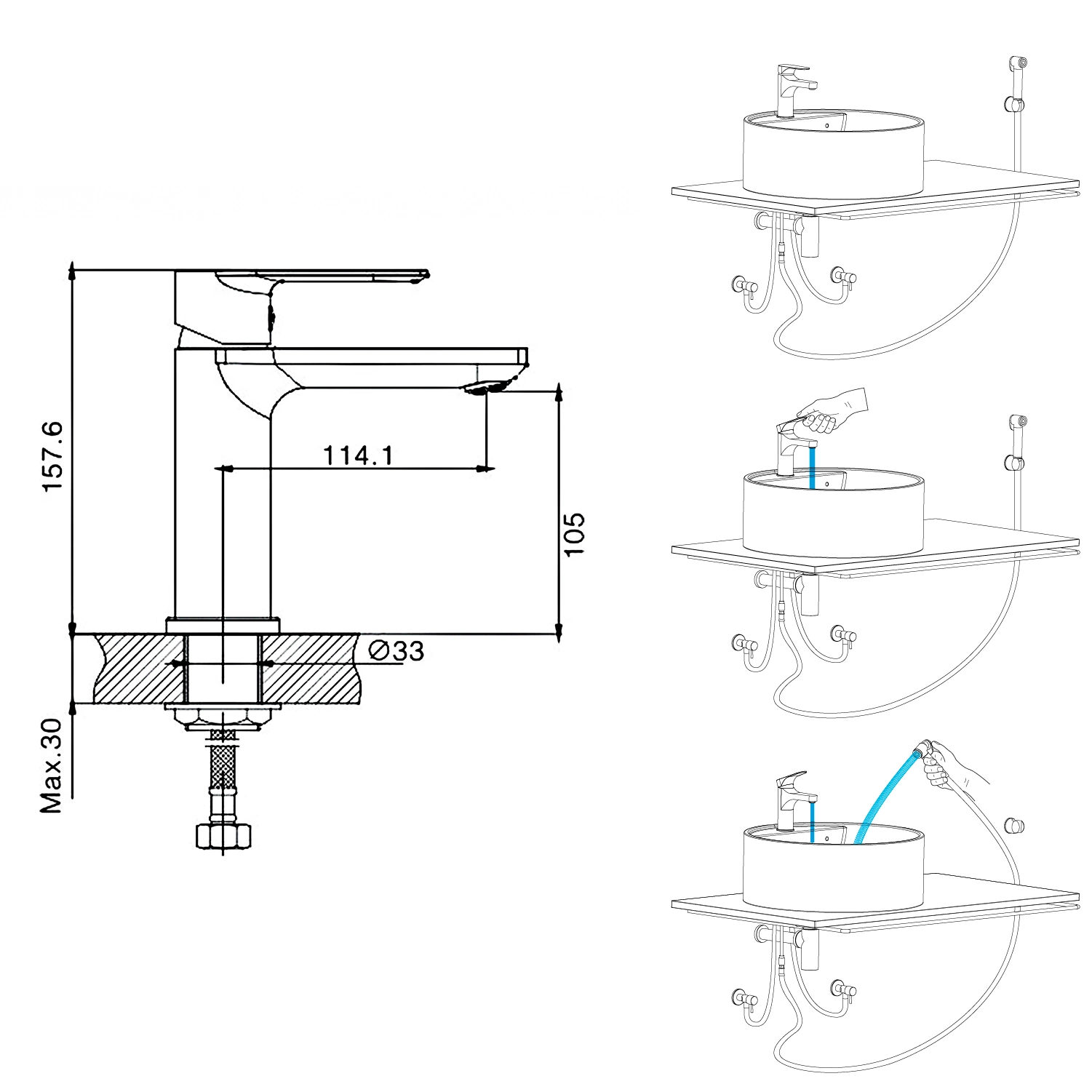 | Wyposażenie | Do małych umywalek, Prysznic bidetowy |