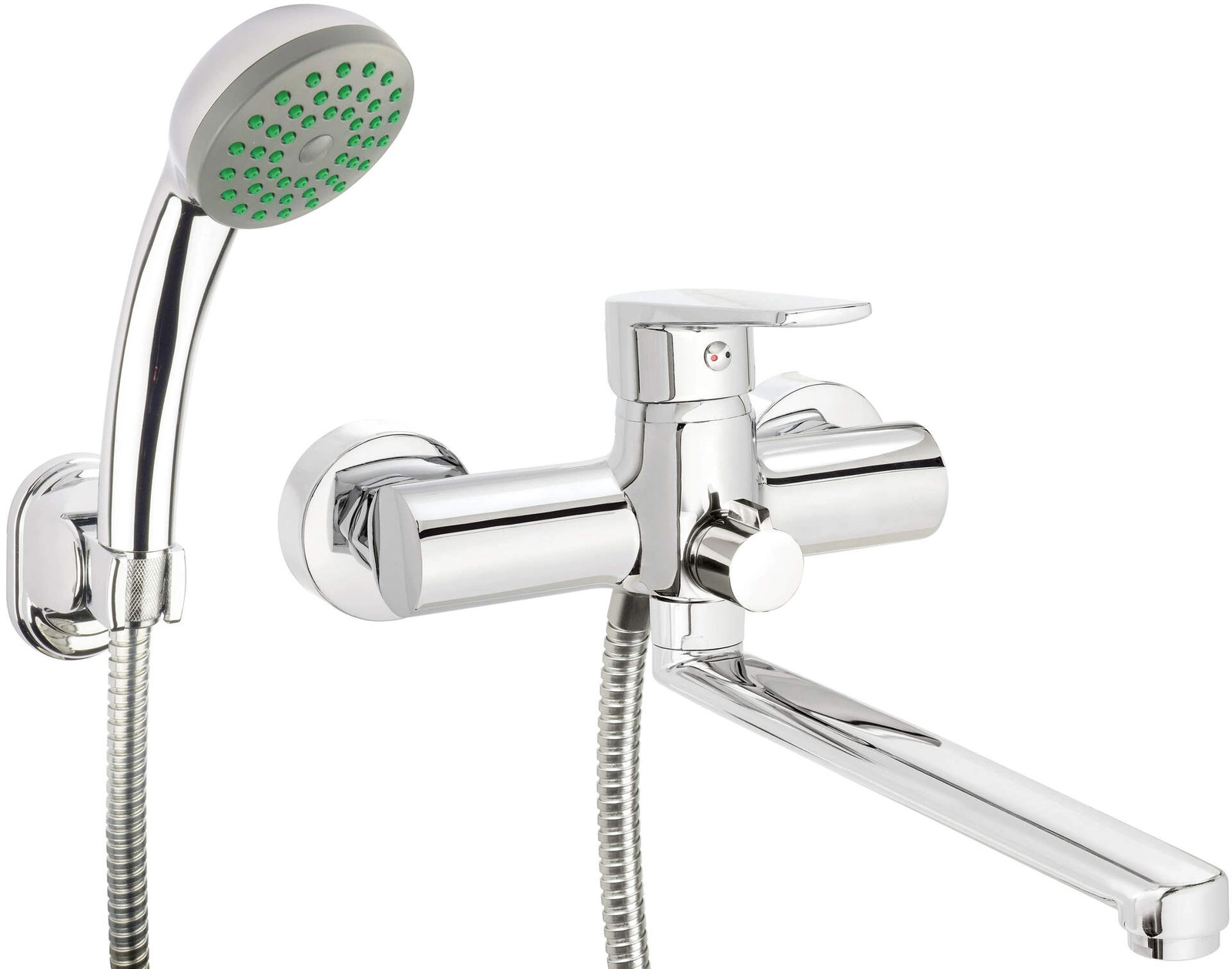 Bateria umywalkowo-wannowa ścienna z zestawem prysznicowym