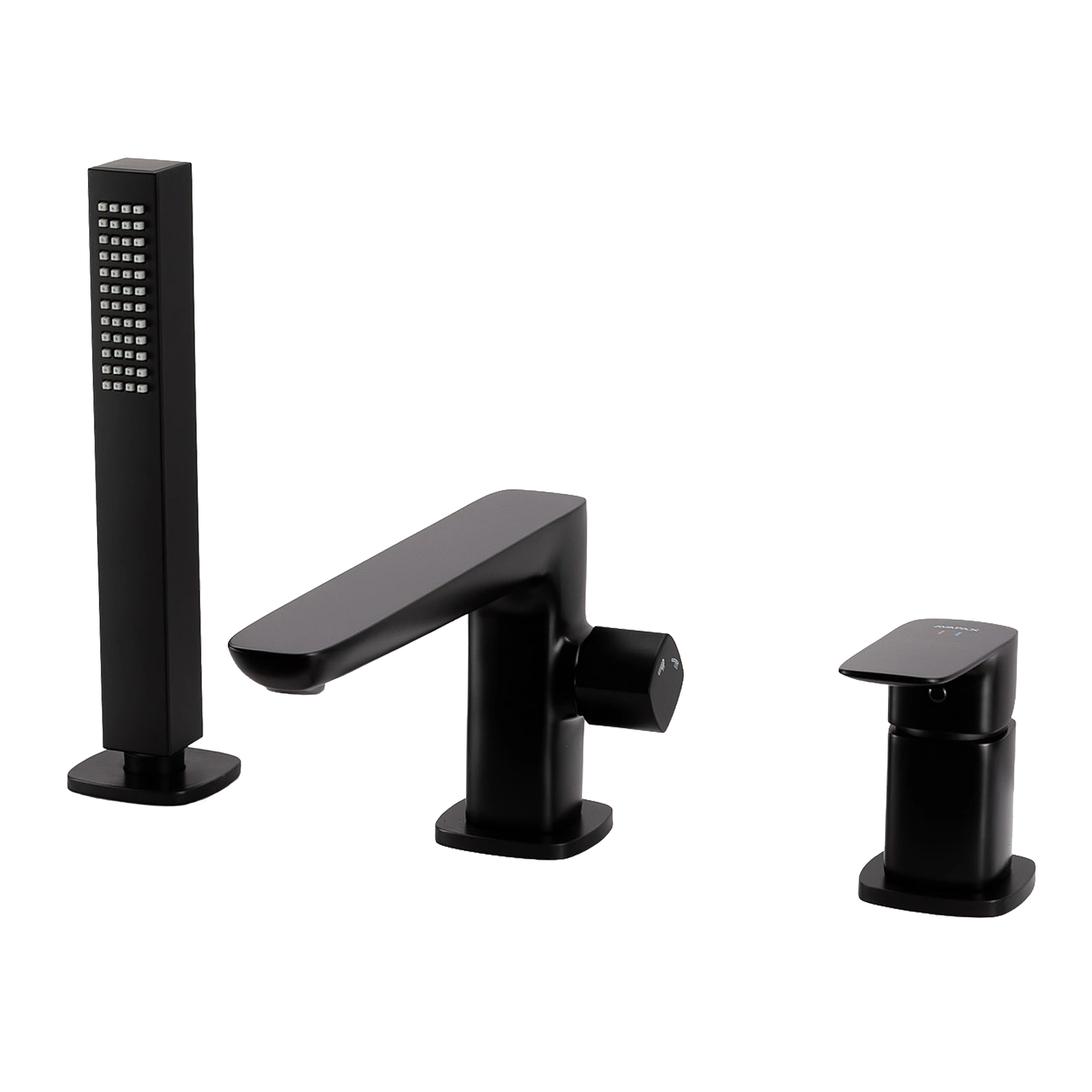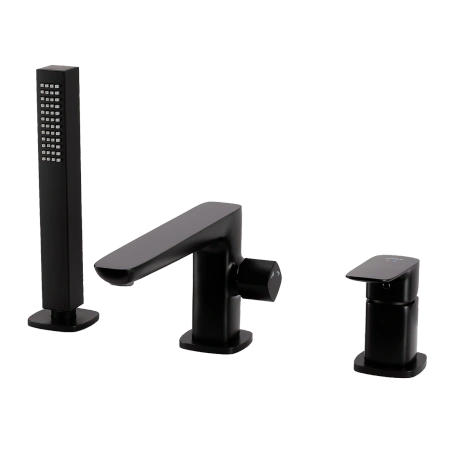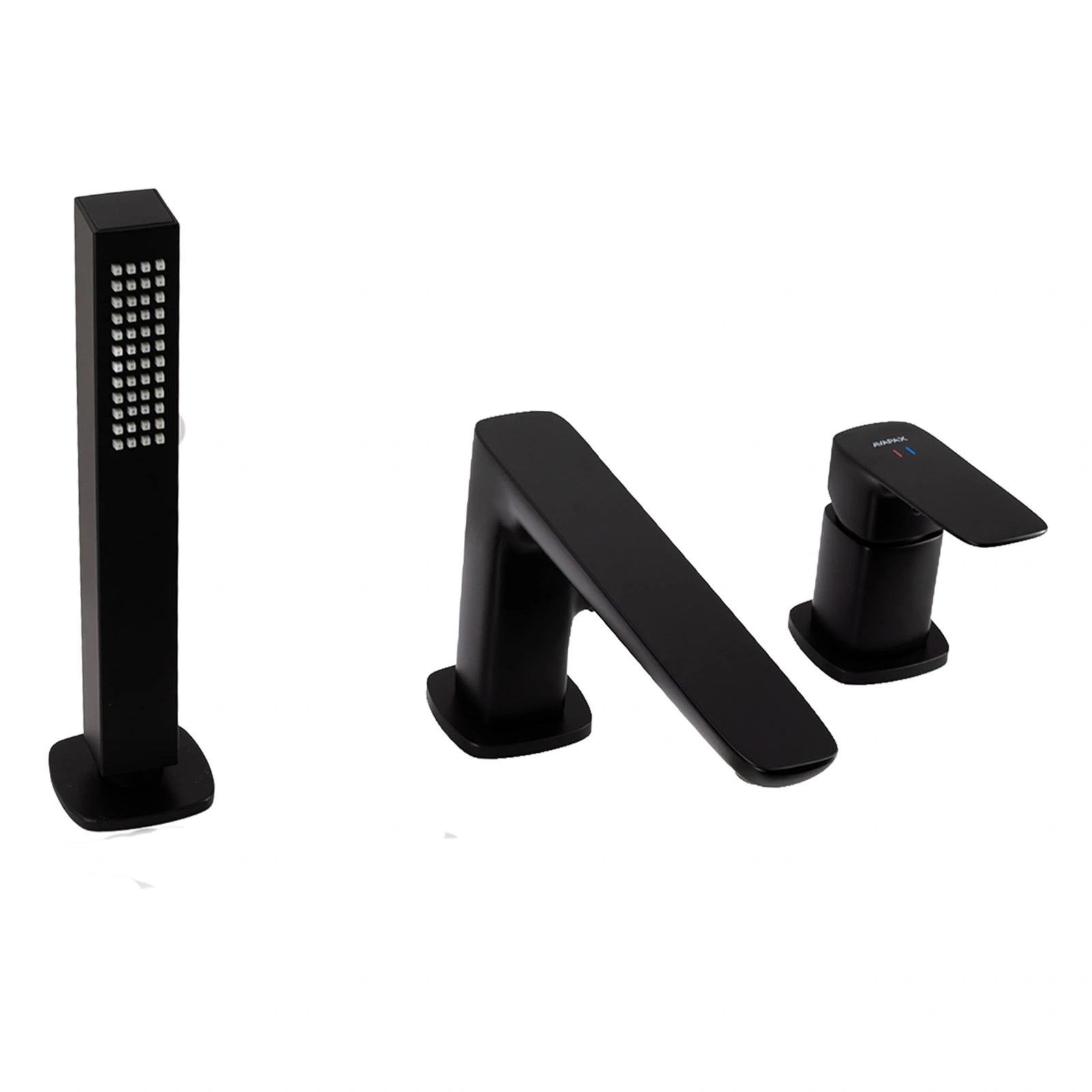 - Avapax QANIX, Bateria wannowa 3‑otworowa (symbol produktu: ABQA231321) w matowej czerni. Mosiężna konstrukcja, ceramiczna głowica i obrotowa wylewka zapewniają precyzyjną, cichą pracę. Przełącznik prysznic/wanna i wąż 1,5 m ułatwiają kąpiel.