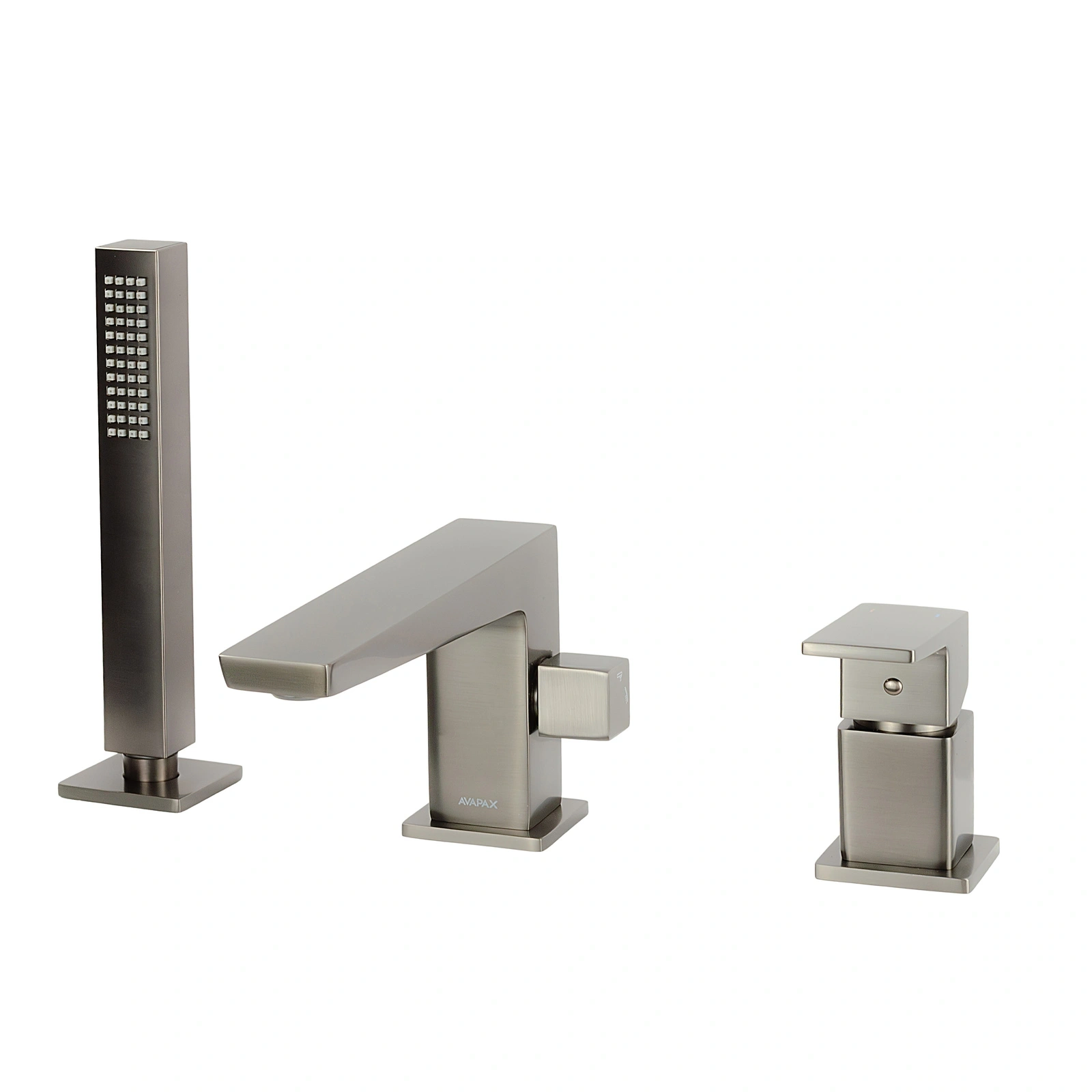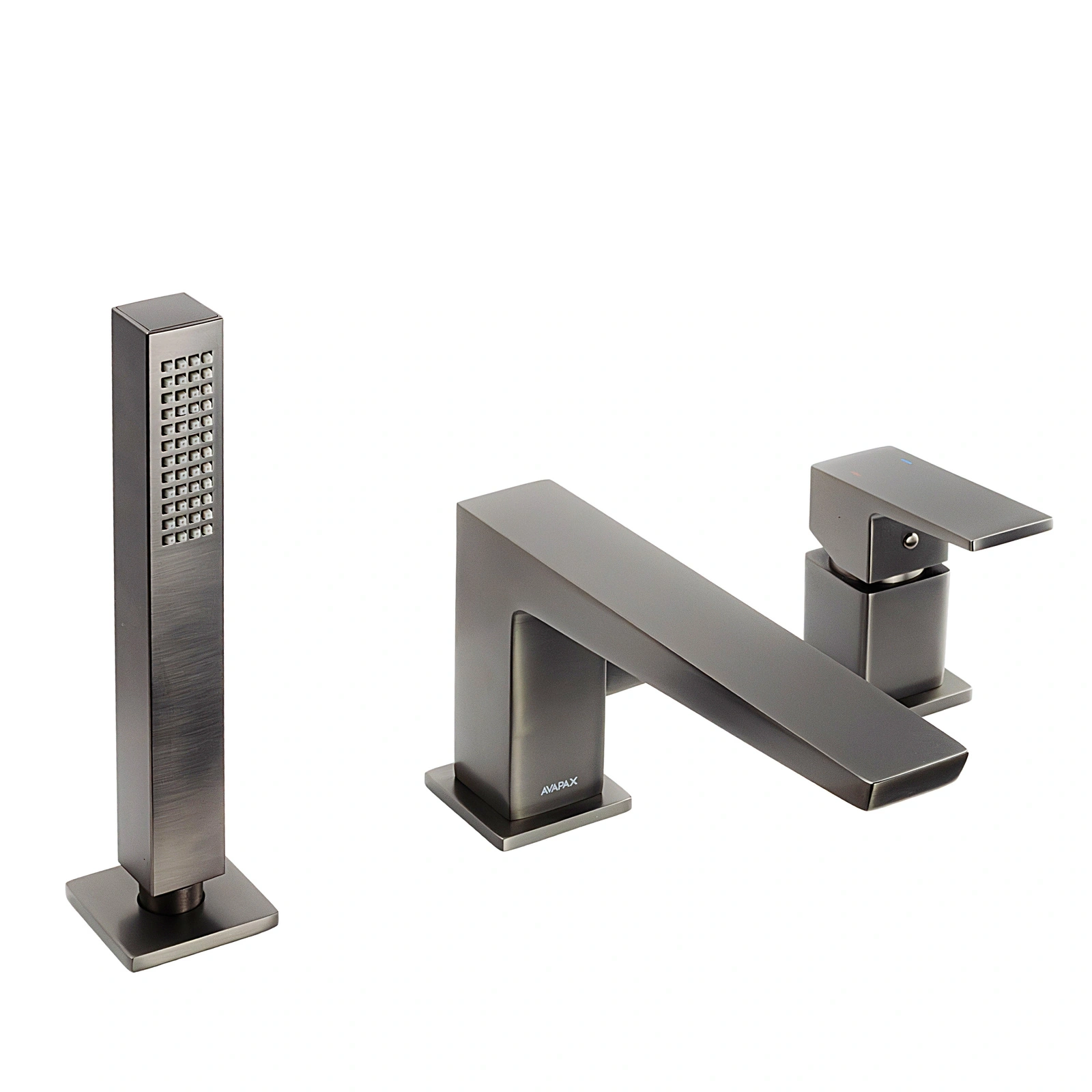 Bateria wannowa 3-otworowa (kod: ABVE231421) – kolekcja VELLANO marki AVAPAX. Geometryczna, wyraźnie zarysowana forma i matowe wykończenie w kolorze gun metal podkreślają współczesny minimalizm VELLANO: czysta estetyka, proporcje i komfort codziennego użytkowania. Zestaw 3‑elementowy łączy wygodę jednouchwytowej obsługi, ruchomą wylewkę dla sprawnego napełniania wanny oraz smukłą, 1‑funkcyjną słuchawkę prysznicową. Materiał: mosiądz – trwały, odporny na korozję, gwarantujący długowieczność. Kolor/wykończenie: gun metal mat.