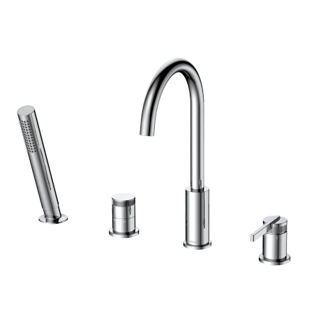 - Avapax AUREVO, Bateria wannowa 4-otworowa (symbol produktu: ABAU241121) w kolorze chrom połysk łączy elegancję i wygodę: mosiężna, z płynną obsługą jedną dźwignią, przełącznikiem funkcji, ruchomą wylewką i słuchawką z długim wężem.