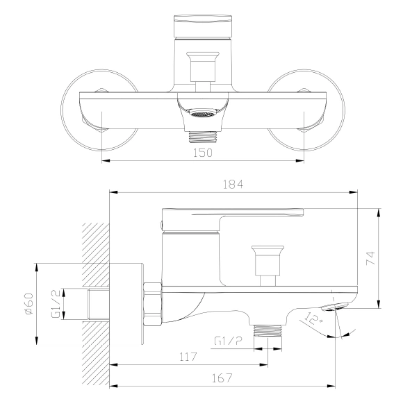 • Montaż: ścienny; rozstaw 150 mm; przyłącza G1/2; wylewka stała; przełącznik natrysku: ciśnieniowy; typ: jednouchwytowa.
