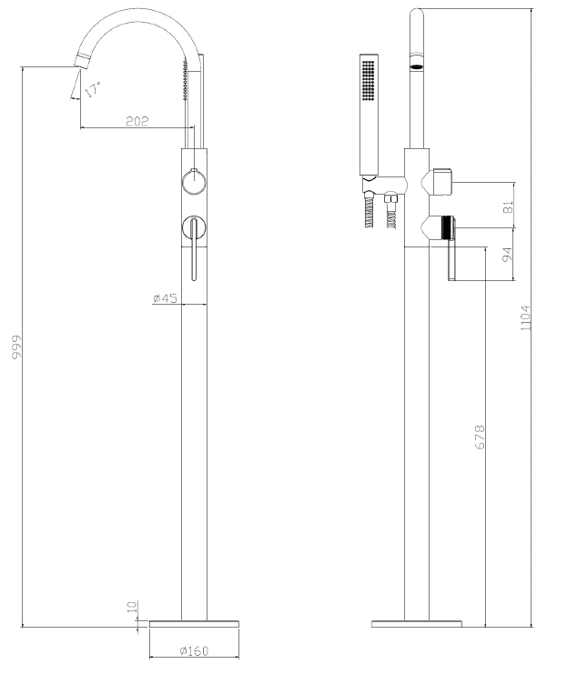 • Wymiary: wysokość 1104 mm; zasięg wylewki 202 mm; średnica podstawy 160 mm,