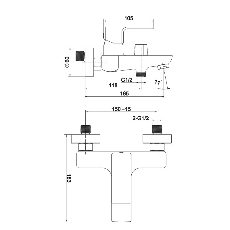 Bateria wannowo - prysznicowa Aquila Matt Black