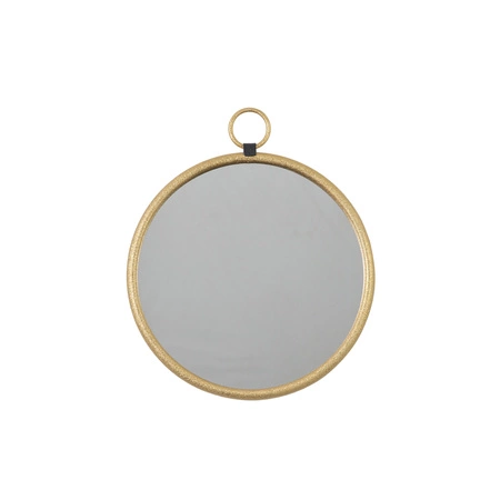 Proste, ale stylowe lustro o industrialnym charakterze, z luksusową złotą metalową ramą i pętlą do zawieszania, połączoną z główną ramą za pomocą kontrastującego czarnego metalu, który dodaje subtelnego akcentu. Idealny dodatek do salonu, sypialni lub przedpokoju.
