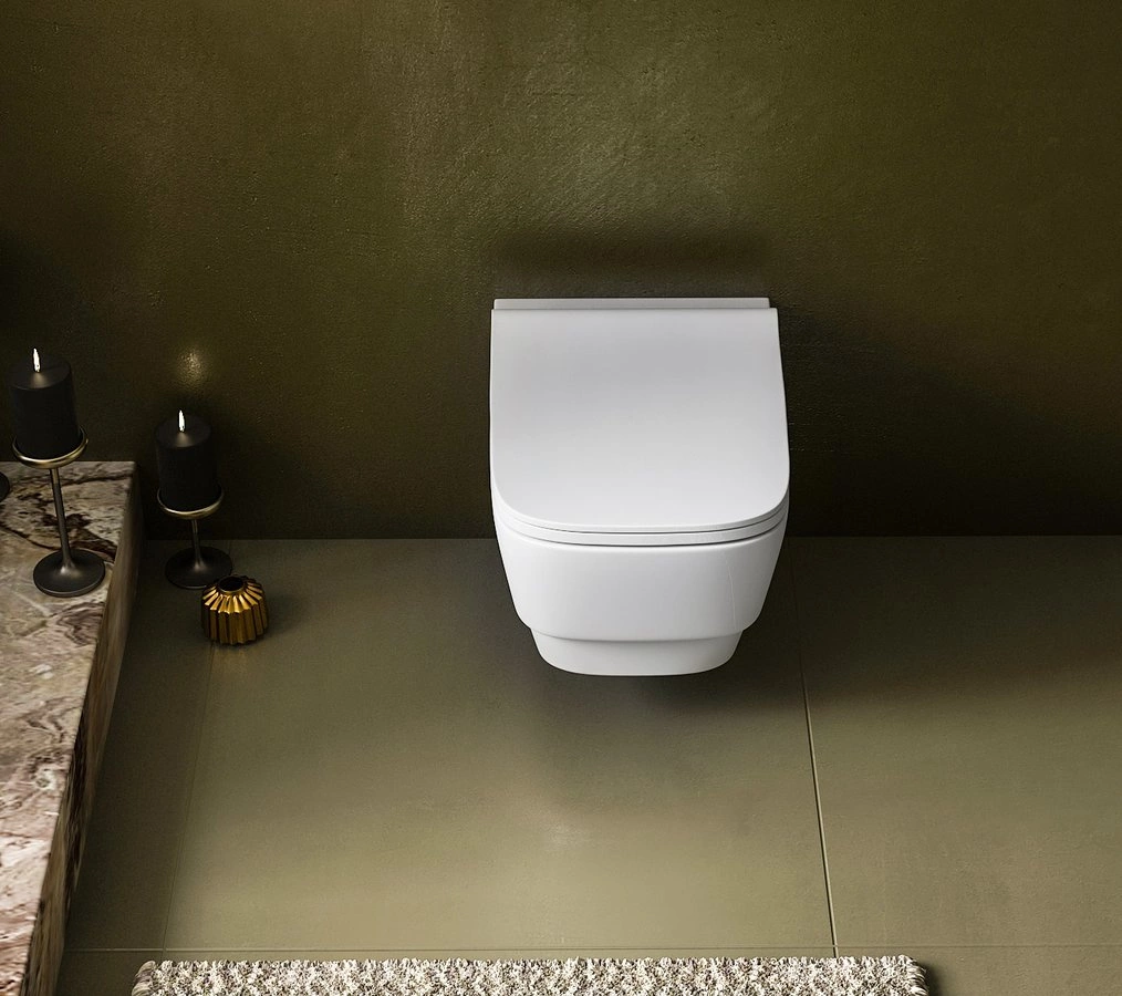 Rimless (NoRim) - toalety bez tradycyjnego kołnierza spłukującego. Gładka powierzchnia bez zbędnych wydrążeń, otworów i zagięć . Woda spłukująca wypływa przez dystrybutor wody tylko z tyłu misy WC, a dzięki specjalnemu kształtowi ceramiki doskonale opłukuje wnętrze. Zaletą jest łatwa konserwacja i czyszczenie miski WC.
