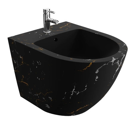 Bidet wiszący SOFI FIRE to pół-owalna bryła, wyróżniająca się czarnym, matowym kolorem i wzorem imitującym marmur. Połączenie minimalistycznej linii i niebanalnej kolorystki sprawia, że ten model pozwoli stworzyć niepowtarzalne aranżacje łazienki w stylu nowoczesnym, glamour czy loftowym. Jeśli chcesz wprowadzić do swojego wnętrza nową odsłonę czerni, wybór bidetu SOFI FIRE będzie doskonałym rozwiązaniem. Produkt oprócz dużej funkcjonalności, wyróżnia się nietuzinkowym pięknem. Jeśli urzekł Cię oryginalny design tego modelu, sprawdź również miskę wiszącą SOFI SLIM FIRE oraz umywalkę nablatową FUEGO.