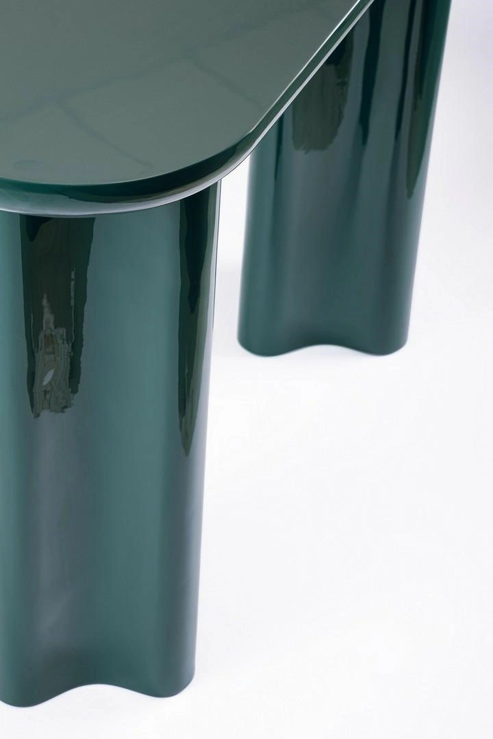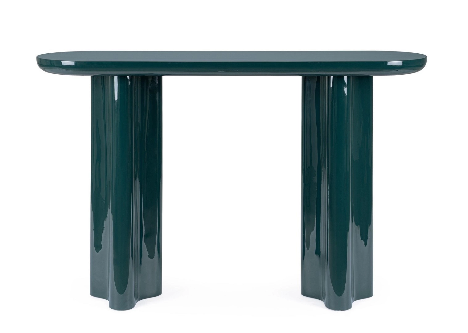 BIZZOTTO konsola OTILIA zielona. Idealna propozycja dla osób, które lubią subtelne, a zarazem współczesne elementy w wystroju wnętrz. Mebel wykonany z płyty MDF, pokryty połyskującym lakierem, wyróżnia się solidnością, prostą pielęgnacją oraz eleganckim, nowoczesnym charakterem. Nietypowa forma podstawy dodaje całości wyjątkowości i oryginalności. Zielone wykończenie wprowadza świeżość i stylowy akcent do aranżacji. Świetnie sprawdzi się w przedpokoju, salonie, a także jako ciekawy dodatek w sypialni. Poznaj pełną kolekcję Otilia i stwórz wnętrze pełne szyku i komfortu. Wymiary: wys. 80 cm / szer. 120 cm / gł. 35 cm Waga brutto: 22,3 kg.