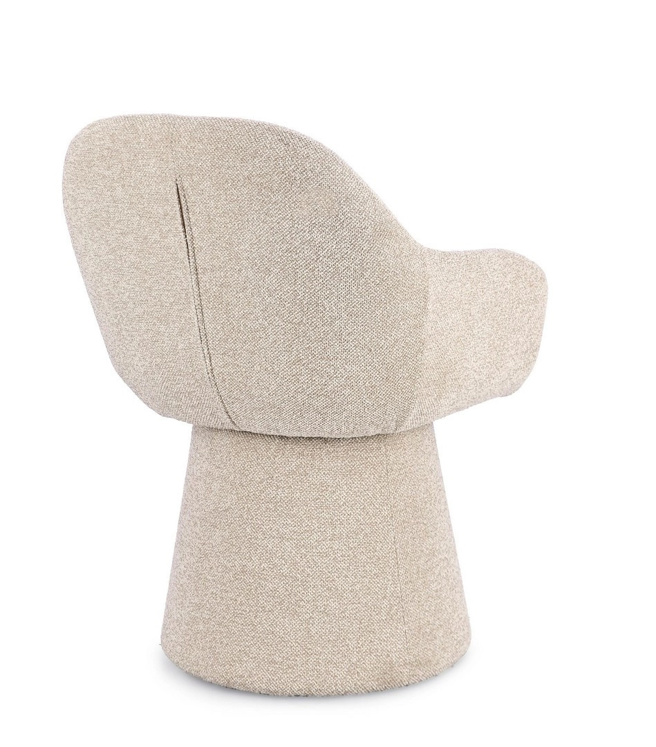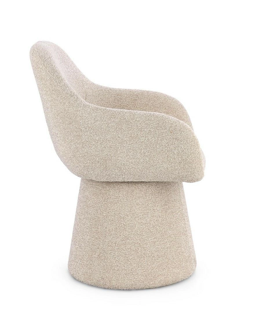 BIZZOTTO krzesło obrotowe ANTARA ARM beżowe. Nowoczesny design łączy w sobie stylowy wygląd z ponadczasową elegancją. Stalowa konstrukcja w połączeniu z ergonomicznie ukształtowanym siedziskiem i podłokietnikami zapewnia lekkość, a jednocześnie wyjątkową trwałość. Obrót o 360° umożliwia płynne poruszanie się i komfortową zmianę kierunku bez wstawania. Obicie z eleganckiej tkaniny bouclé wraz z wypełnieniem z miękkiej pianki gwarantuje wygodę i długotrwałą funkcjonalność. Beżowy odcień nadaje wnętrzu przytulności i subtelnej klasy. Idealnie wpisuje się w aranżacje nowoczesne, skandynawskie i minimalistyczne. Zapoznaj się z całą kolekcją Antara i wybierz coś, co najlepiej wpasuje się w Twoją przestrzeń. Wymiary: wys. 81,5 cm / szer. 58 cm / gł. 60,5 cm Waga brutto: 11 kg.