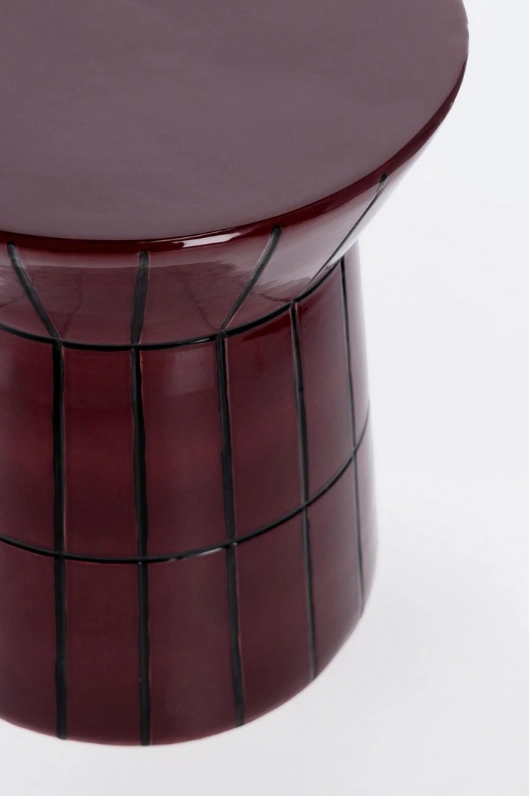 Stolik kawowy ABBES BORDEAUX marki BIZZOTTO to wyjątkowy element dekoracyjny o artystycznym charakterze, który łączy naturalne materiały z niepowtarzalnym designem. Wykonany z emaliowanej terakoty, zachwyca swoją formą oraz głębokim, eleganckim odcieniem bordeaux (ciemnej czerwieni).